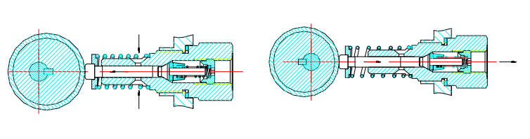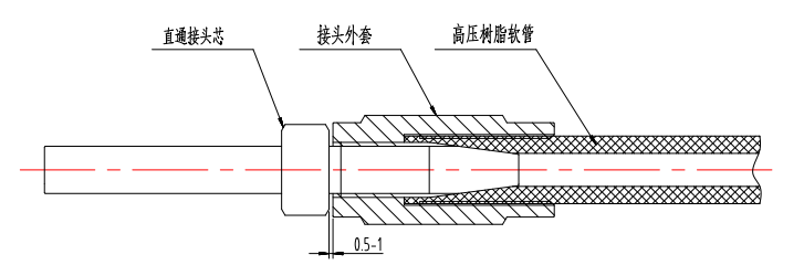 2) 把直通接頭芯從接頭外套的另一端順時針旋入,二者之間留有 1mm 左右間隔,如圖所示。為便于安裝,可在接頭芯前段表面沾一點(diǎn)油或脂。