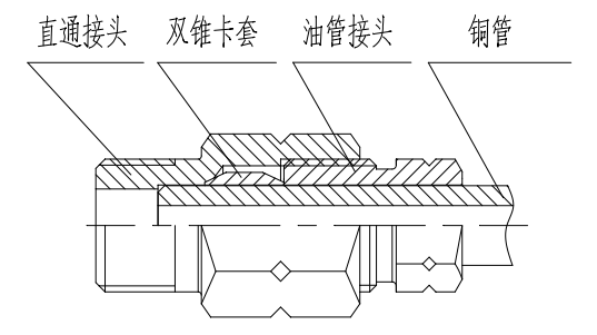 4) 推入卡套,擰上油管接頭。感覺油管接頭著力后,將油管接頭再擰入一圈至一圈半。