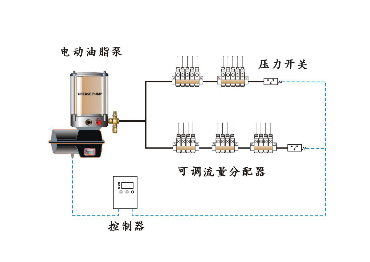 定可靠,可以克服遞進(jìn)式潤滑系統(tǒng)的缺點(diǎn),能多點(diǎn)同時(shí)供油,不會出現(xiàn)一個(gè)潤滑點(diǎn)堵塞影響